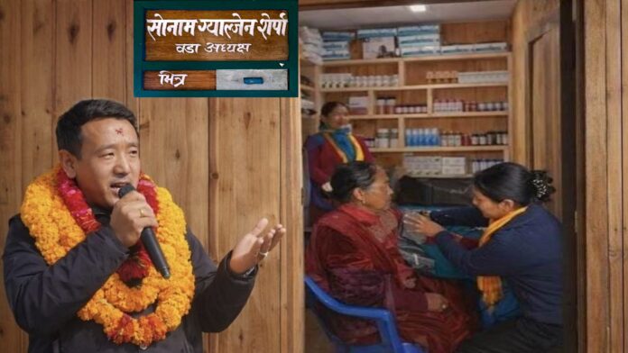 सोलुखुम्बु, पुस १४ । हिमाली जिल्ला सोलुखुम्बुमा स्वास्थ्य सेवा अझै पनि भौगोलिक कठिनाइसँग गाँसिएको विषय हो । छरिएर रहेका बस्ती, उकालो–ओरालो बाटो र सीमित पूर्वाधारका कारण सामान्य उपचारसमेत यहाँका नागरिकका लागि चुनौतीपूर्ण छ । यही यथार्थका बीच सोलुदुधकुण्ड नगरपालिका–७ गार्मामा सुरु गरिएको एउटा नवीन अभ्यासले स्थानीय शासनको मानवीय पक्षलाई उजागर गरेको छ । वडाध्यक्ष सोनाम ग्याल्जेन शेर्पाले आफ्नै कार्यकक्षलाई स्वास्थ्य क्लिनिकका रूपमा प्रयोगमा ल्याएर नागरिकलाई नजिकैबाट सेवा उपलब्ध गराउन थालेका छन् ।