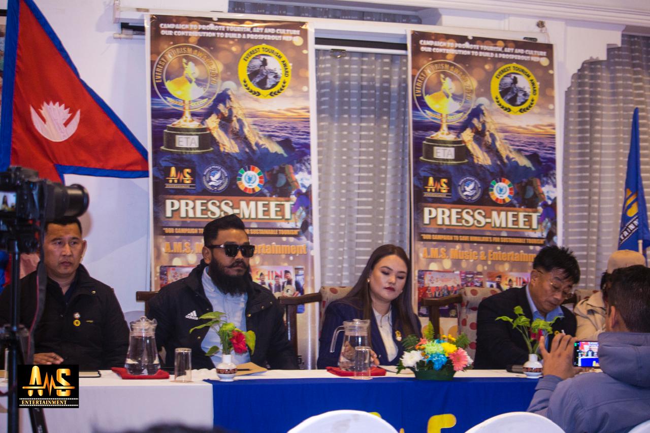 काठमाडौँ, पुस १५ । आगामी मे २९ मा एभरेष्ट टुरिज्म अवार्ड २०२६ आयोजना हुने भएको छ । नेपालको पर्यटन, संस्कृति, शान्ति र सामाजिक पहिचानलाई अन्तर्राष्ट्रिय स्तरमा प्रवद्र्धन गर्ने उद्देश्यसहित एएमएस म्यूजिक एण्ड इन्टरटेनमेण्ट प्रा.लि.को आयोजनामा उक्त अवार्डं आयोजना हुने भएको हो । उक्त कार्यक्रमबारे जानकारी दिन आज मंगलबार राजधानी काठमाडौँमा प्रेस मिट सम्पन्न भएको छ ।
